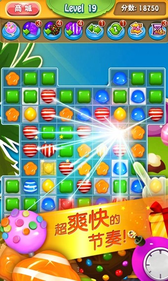 游戏以经典三消为核心,交换相邻糖果让三个及以上同色连成一线即可消除,上手没有门槛,手指滑动响应快,误操作可以撤回一步,新手也能快速适应。关卡目标多样,有的要求收集指定物品,有的需要清理冰块、苏打等障碍,推进过程中不会觉得重复。游戏包含多种模式,传统棋盘与六角棋盘都有,不同模式考验的思路不一样,想拿三星不能只乱消,要优先处理边角、集中触发连击,利用闪电、炸弹等道具清理顽固点位。离线也能正常玩,联网后能看好友排行榜,每天登录有对应奖励,日常碎片时间拿出来玩几局很合适。